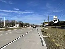 What is now DE 279 was originally an unimproved county road.[6] From the 1910s to the 1938, it was part of a branch of the Lincoln Highway,[7] and part of the Capitol Trail,[8] which ran from Atlanta through Washington, D.C., passing through Delaware by way of Newark, Wilmington, and Claymont, before terminating in Philadelphia.[9][10] By 1924, the road was paved.[11] In 1925, suggestions were made for the state to take over maintenance of the highway connecting the Maryland state line to Newark.[12][13] In 1927, the state took over maintenance of the highway between the Maryland state line and Newark.[14] When Delaware designated its state highways by 1936, the current alignment of DE 279 was designated as the westernmost part of DE 2, which ran from the Maryland state line through Newark and continued east to Wilmington.[15] The portion of DE 2 along Elkton Road between the Maryland state line and Newark was widened into a divided highway in 1972.[16] In 2013, DelDOT proposed the renumbering of routes in and around Newark, which involved truncating DE 2 from the Maryland state line to the eastern edge of Newark and the removal of DE 2 Bus. through downtown Newark. As a result of these changes, the portion of Elkton Road between the Maryland state line and DE 4/DE 896 (Christiana Parkway) was to be designated as DE 279, matching the route number across the Maryland state line. The goal of the project was to "simplify the route designations in Newark, reduce sign clutter, and reduce sign maintenance costs." The changes were completed in the middle part of 2013.[2]