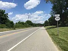 In July 2008, a widening project began on US 301/DE 299 between United Drive and the east end of the concurrency.[20] This widening to four lanes was completed in November 2010.[21] On July 15, 2017, DE 299 was realigned near the Maryland border as a result of construction of the US 301 toll road.[22] The concurrency with US 301 west of Middletown was removed when the US 301 toll road opened on January 10, 2019.[23][24] There are plans to reconstruct and widen DE 299 between Catherine Street and DE 1 in Middletown, with the section between Catherine Street and Cleaver Farms Road/Dickenson Boulevard to be widened into a three-lane road with a center left-turn lane and the section between Cleaver Farms Road/Dickenson Boulevard and DE 1 to be widened into a four-lane divided highway. Construction on the widening project began on July 6, 2021 and is expected be completed in the later part of 2023.[25][26]