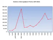 Population statistics for Pristina start with the first census of 1874 when the region of Pristina had 1,567 houses, 258 villages and 19,260 inhabitants, 13,435 of whom were Muslims and 5,825 were Christians.[6]