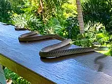 Dendrelaphis calligaster, also called green tree snake and northern tree snake, is a colubrid snake native to Indonesia, Papua New Guinea and Australia.[1] It is a slender, large-eyed, non-venomous, diurnal snake, which grows up to 1.2 m in length and is greenish, brown, or greyish above with a cream or yellow belly.[2]