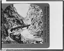 The Denver, South Park, and Pacific Railroad (later called the Denver, Leadville and Gunnison Railway) was a historic 3 ft (914 mm) narrow gauge railroad that operated in Colorado in the western United States in the late 19th century. The railroad opened up the first rail routes to a large section of the central Colorado mining district in the decades of the mineral boom. The railroad took its name from the fact that its main line from Denver ascended the Platte Canyon and traversed South Park, hence its popular name "The South Park Line." Despite its lofty goals, the line never connected itself with the Pacific or any transcontinental line, apart from its terminal at Denver Union Station.