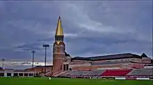 ArenasUniversity of Denver Arena (1948–1997)University of Denver Arena (DU Arena) was a 5,237-seat multi-purpose arena in Denver. In addition to serving as the Pioneers' home rink, it hosted several Frozen Fours. It was razed in 1997 to make room for the $75 million Magness Arena, (part of the Ritchie Center for Sports and Wellness) which opened in 1999. Originally a Naval Drill Hall built during World War II in Farragut, Idaho, the DU Arena was donated to the University after the war and reassembled on the Denver campus in 1948–49 to house the University's then-new ice hockey program. The arena was refurbished in 1972–73 when the roof needed repairs, and 14 seven-ton steel trusses were added to shore up the roof. Additional patchwork renovations were added in the 1990s, prior to razing in 1997. The best known features of the arena were the steep bleacher balcony at the south end, and the 1970s rainbow painted on the north end wall. Famous hockey games held there include the NCAA ice hockey finals in 1961, 1964 and 1976. Magness Arena (1999–present)Magness Arena is a 7,200-seat multi-purpose collegiate sports arena in Denver, Colorado. It was built from 1997 to 1999 as part of the Daniel L. Ritchie Center for Sports & Wellness, an $84 million, 400,000-square-foot (37,000 m2) sports complex at the University of Denver. It is home to the University of Denver Pioneers ice hockey and basketball teams. The Ritchie Center replaced the former DU Arena and DU Fieldhouse, which were razed in 1997 to make way for the Ritchie Center. The basketball team also plays smaller games at Hamilton Gymnasium, located in the Ritchie Center. The arena is named after cable television pioneer Bob Magness, who donated $10 million towards construction costs. Other Colorado ArenasWhen the DU Arena roof was being fixed between 1972 and 1973, the Pioneers played home games at the Denver Coliseum. When Magness Arena was under construction from 1997 to 1999, Denver played its home games at four different arenas around the state: Denver Coliseum, McNichols Arena, Colorado Springs World Arena and at the Air Force Academy's Cadet Ice Arena. DU has also played a 2012 home exhibition game at Denver's Pepsi Center against the University of British Columbia, and played a league game in 2023, a 2-0 win over rival Colorado College before over 17,000 fans (an indoor DU home record) in the same building, now known as Ball Arena. Denver's all-time record hockey crowd was the 2016 regular season outdoor NCHC game against Colorado College, called "The Battle on Blake" before over 35,000 fans at Denver's Coors Field baseball stadium, the most fans to ever see a home DU sporting event in Denver. DU's previous indoor record home crowd was the 1995 Denver Cup final at McNichols Arena, where Denver defeated Colorado College before over 16,000 fans.