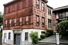 Toyama was both the setting of Coffinman and Takita's home prefecture, but filming was done in Yamagata; this was largely because the national Nōkan Association, headquartered in Hokkaido, had a branch office in Sakata.[41] Some preliminary scenes of snowy landscapes were shot in 2007, and primary filming began in April 2008, lasting 40 days.[42] Locations included Kaminoyama, Sakata, Tsuruoka, Yuza, and Amarume.[43] The NK Agent office was filmed in a three-storey, Western-style building in Sakata built between the mid-Meiji and Taishō periods (1880s–1920s). Originally a restaurant named Kappō Obata, it went out of business in 1998.[44] The Kobayashis' café, called Concerto in the film, was located in Kaminoyama in a former beauty salon. From a hundred candidates, Takita chose it for its atmosphere as an aged building with a clear view of the nearby river and surrounding mountain range.[45] The scene of the shooting of the training DVD took place in the Sakata Minato-za, Yamagata's first movie theatre, which had been closed since 2002.[46]