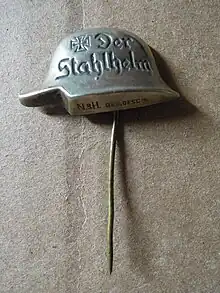 Der Stahlhelm, Bund der Frontsoldaten (German: 'The Steel Helmet, League of Front-Line Soldiers'), commonly known as Der Stahlhelm ('The Steel Helmet'), was a German First World War veteran's organisation existing from 1918 to 1935. It was part of the "Black Reichswehr" and in the late days of the Weimar Republic closely affiliated to the monarchist German National People's Party (DNVP), placed at party gatherings in the position of armed security guards (Saalschutz).[2]