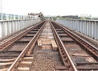 ![]() The railway bridge near the station in 1987 | |