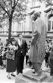 Serbian composer Mirjana Sistek-Djordjevic (born 1935) set poems from Maksimovic’s Trazim Pomilovanje to music in her composition for women’s chorus and orchestra.[15] A statue of Maksimović was unveiled in Valjevo on 27 October 1990, while she was still alive.[16] In the 1990s, as part of the renaming of communist-era street names following the breakup of Yugoslavia, Đuro Salaj Street in Belgrade was renamed Desanka Maksimović Street.[17] In May 1996, the Federal Republic of Yugoslavia issued a commemorative postage stamp in her honour.[6] A bronze statue of Maksimović was erected in Belgrade's Tašmajdan Park on 23 August 2007.[16]