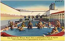 The hot springs were used for hundreds of years by the Cahuilla Native American peoples long before the early settlers arrived.[4] They referred to the area as Sec-he (boiling water).[5] The springs were an integral aspect of both their creation myths as well as their culture, in the form of nukatem (sacred spirit creatures.)[5] In the 1820s, the Mexican explorer, Don José Romero called the area Agua Caliente (hot water).[6] In 1862, the Homestead Act was put into place by Abraham Lincoln, and shortly thereafter, non-Native explorers and settlers began to arrive. The City of Desert Hot Springs and the Desert Hot Springs Historical Society note that Jack Riley arrived in 1908, but did not settle there.[7] These sources also state that the first white settler was a rugged woman pioneer, Hilda M. Gray, who developed a homestead south of Two Bunch Palms.[8][7]