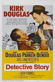 Detective Story is a 1951 American crime drama directed by William Wyler and starring Kirk Douglas that tells the story of one day in the lives of the various people who populate a police detective squad. The ensemble supporting cast features Eleanor Parker, William Bendix, Cathy O'Donnell, and George Macready. Both Lee Grant and Joseph Wiseman play large roles in their film debuts. The film was adapted by Robert Wyler and Philip Yordan from the 1949 play of the same name by Sidney Kingsley. It was nominated for four Academy Awards, including Academy Award for Best Director for Wyler, Best Actress for Parker, and Best Supporting Actress for Grant.