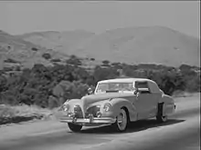 The car owned by the character Charlie Haskell and later driven by Al Roberts is a customized 1941 Lincoln Continental V-12 convertible, a base model of a "Cabriolet" but one that features bolted-on rear wheel-well covers and some exterior components added later from Lincoln's limited 1942 version of the same model.[14] Reportedly, the production budget for Detour was so tight that director Ulmer decided to use this car, his "personal car", for the cross-country crime drama.[14]