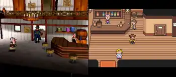 Flint within an inn, as compared between the Nintendo 64 and Game Boy Advance versions of Mother 3