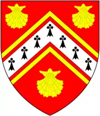 Argent, on a chief sable three cinquefoils of the field | Downton[lower-alpha 3] |