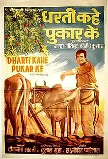 Dharti Kahe Pukarke (transl. Call of the Earth) is a 1969 Indian Hindi-language drama film, produced by Deenanath Shastri under the Vaishali Films banner and directed by Dulal Guha. Starring Jeetendra, Nanda, Sanjeev Kumar and music composed by Laxmikant–Pyarelal.[1] The film was remade as Sautela Bhai.