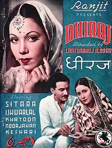Dhiraj (Patience) is a Bollywood social film. It was released in 1942.[1][2] The film was directed by Chaturbhuj Doshi for Ranjit Movietone. Gyan Dutt was the music director, with lyrics by Pandit Indra.[3] The cast included Sitara Devi, Ishwarlal, Kesari, Nurjehan.[4]