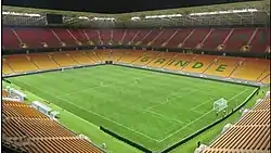 The Diamniadio Olympic Stadium, also known as the Stade Me. Abdoulaye Wade (French: Stade olympique de Diamniadio) is a multi-purpose stadium, which can host football, rugby and athletics, in Diamniadio, in Dakar, Senegal. It is the national stadium of the Senegal national football team. The stadium which has a capacity of 50,000 designed by Tabanlıoğlu Architects and built by Summa.[1][2] It will host the 2026 Summer Youth Olympics.[3]