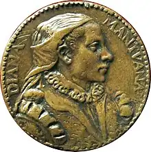 Diana Scultori, Diana Mantuana, or Diana Ghisi (1547–1612) was an Italian engraver from Mantua, Italy. She is one of the earliest known women printmakers, making mostly reproductive engravings of well-known paintings or drawings, especially those of Raphael and Giulio Romano, or ancient Roman sculptures.[1]