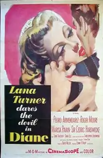 Diane is a 1956 American historical drama film about the life of Diane de Poitiers, produced by Metro-Goldwyn-Mayer, directed by David Miller, and produced by Edwin H. Knopf from a screenplay by Christopher Isherwood based on a story by John Erskine. The music score was composed by Miklós Rózsa, and Robert H. Planck was the cinematographer, who filmed in CinemaScope and Eastmancolor. The exceptionally lavish costumes were designed by Walter Plunkett.