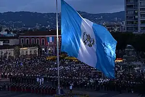 Members of the Armed Forces raising the flag of Guatemala at the National Palace to commerate the 202nd anniversary of Independence.