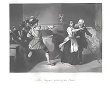 ![]() An engraving of Dicey Langston protecting her father from Loyalists | |