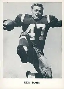 Richard "Dick" Alwin James (May 22, 1934 – June 28, 2000) was an American football halfback and cornerback in the National Football League (NFL) for the Washington Redskins, New York Giants and the Minnesota Vikings. He played college football at the University of Oregon and was drafted in the eighth round of the 1956 NFL Draft. James' mother was Mohawk/Mohican Native American.