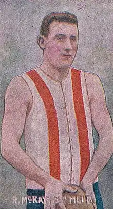 John Francis "Dick" McCabe (15 June 1877 – 21 June 1932) was an Australian rules footballer who played with Fitzroy, St Kilda and South Melbourne in the Victorian Football League (VFL);[1] he used the pseudonym Dick McKay during his playing days and thus that is how his name appears in many football records.[2]