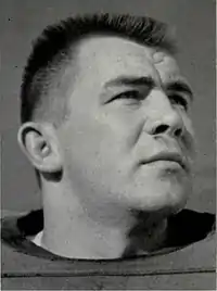 O'Shaughnessy also competed on the Michigan Wolverines wrestling team.[12] As a freshman, he won the Michigan AAU championship.[5] He then won the Big Ten Conference championship in the heavyweight division as a sophomore in 1952 and again as a junior in 1953.[13][14] However, a leg injury forced him to withdraw from competition halfway through his senior season in 1954.[15] He compiled a 28–4–2 record as a collegiate wrestler.[16]