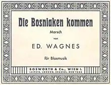 "Die Bosniaken kommen" (English: "The Bosniaks are Coming") is a military march, which was composed by Austrian composer Eduard Wagnes in 1895. It was composed in Graz in honour of the soldiers of the Bosnian-Herzegovinian Infantry, who were in the Austro-Hungarian army. This is one of the most popular military marches, and today is played on all military events in Austria.