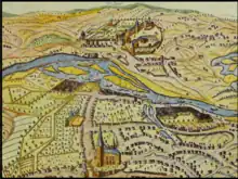 Count Dietrich entered into a bond with the Duke of Cleves on 1 September 1432. [5] While Broich, south of the River Ruhr, had previously been oriented to Cologne. Brother Dietrich dedicated the allodial lordship with Broich castle, the high and low jurisdiction, lands and fishing rights on the Ruhr to Cleves to receive it back as a fief from Duke Adolf. Broich became an open fortress for the Duke of Cleves. Men in the service of Dietrich had to pay tribute and swear the oath of allegiance to the duke. His brother William I also made his share of Broich, the upper house, [6] available to the duke.