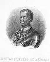 Diego Hurtado de Mendoza (Spanish pronunciation: [ˈdjeɣo wɾˈtaðo ðe menˈdoθa]; 1503/4 – 14 August 1575), Spanish novelist, poet, diplomat and historian, born in Granada in late 1503 or early 1504.