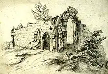 17th century drawing showing the monastery in ruins after the Thirty Years War.