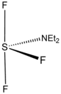 Diethylaminosulfur trifluoride (DAST)[2] is the organosulfur compound with the formula Et2NSF3. This liquid is a fluorinating reagent used for the synthesis of organofluorine compounds. The compound is colourless; older samples assume an orange colour.