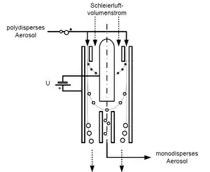A DMA can separate charged aerosol particles or ions according to their mobility in an electric field prior to their detection, which can be done with several means, including electrometers or the more sophisticated mass spectrometers.[26][27][28]