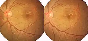 Diffuse unilateral subacute neuroretinitis (DUSN) is a rare condition that occurs in otherwise healthy, often young patients and is due to the presence of a subretinal nematode.[2]