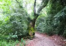 Immediately upon entry into the national park, a fork in the main path begins a trail running through the inner peninsula leading to a local cavern known as the Cave of Zeus (Turkish: Zeus Mağarası). The entrance is dense in vegetation, covering parts of it. There is also a wishing tree to which people usually tie objects and belongings, hoping for their wishes to be granted. The Cave of Zeus is filled with clear subterranean spring water, making it another common tourist attraction near the national park. Visits to the cave typically increase as the waters of the nearby beaches become rougher, thereby making them less inviting. The cave's name invokes the many legends that concern the cave and its origins, including one holding that Zeus bathed in the cave.[19][20]