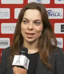 Belenkaya also played on the same SDYUSSHOR SHSH team for the European Club Cup for Women. At the 2015 event, SDYUSSHOR SHSH finished in seventh place out of twelve teams.[61] They finished in seventh place again the following year in 2016, this time out of fourteen teams.[62] Like the national competition, Belenkaya had a better result in her second appearance, scoring 4½/7 and gaining rating points in 2016 compared to a score of 3½/7 in 2015 that lost her rating points.[63][64] Belenkaya's best team result was in 2018 when the competition was divided into a two-group six-team round-robin stage and a three-group four-team two-round knockout stage in which the groups were determined by the round-robin placings. SDYUSSHOR SHSH qualified for the top knockout group and finished in fourth place.[65][66] Although Belenkaya lost rating points in both 2018 and 2019, her victories against higher-rated players Stavroula Tsolakidou and Zhansaya Abdumalik helped her team earn opening-round draws in both instances.[65][67][68]