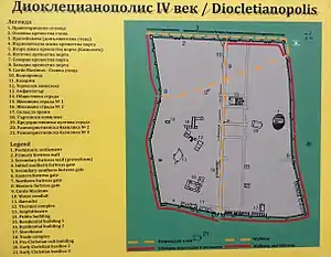 Diocletianopolis (Greek: Διοκλητιανούπολις, Bulgarian: Диоклецианопол, "Town of Diocletian") was a magnificent ancient Roman town in the region of Thrace, nowadays the town of Hisarya in Bulgaria.