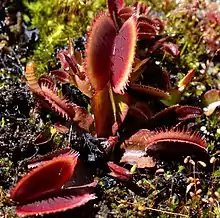 Dionaea muscipula 'Bohemian Garnet' is a cultivar of Dionaea muscipula, the Venus flytrap. It is an F2 cross between Dionaea 'Royal Red' and Dionaea 'Sawtooth' that was published in the September 2007 issue of the Carnivorous Plant Newsletter. In the description of this cultivar, Miroslav Srba noted that it maintains the red coloration of the 'Royal Red' cultivar and most morphological characteristics of 'Sawtooth'. Srba also detailed the smaller size at just 4-6 cm across and the production of many offshoots as novel characteristics that warrant cultivar status. The cultivar name was coined by Srba to honor the country of origin, the Czech Republic (Bohemia), and can be written as Dionaea 'Český Granát'.[1]