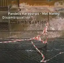 Disambiguation is an album by a quintet co-led by jazz pianist Pandelis Karayorgis and violinist Mat Maneri, which was recorded in 2001 and released on the English Leo label.[1] Maneri had the idea to ask Karayorgis to write pieces for a quintet date with saxophonist Tony Malaby and bassist Michael Formanek already in mind. Drummer Randy Peterson was on pianist's trio and has long played with Mat in Joe Maneri's quartet.[2]