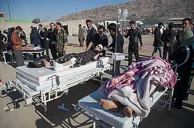 Medical surge – An influx of patients (physical casualties and psychological casualties), bystanders, visitors, family members, media and individuals searching for the missing who present to a hospital or healthcare facility for treatment, information and/or shelter as a result of a disaster.[2]