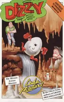 Dizzy – The Ultimate Cartoon Adventure is an adventure-platform game, the first video game featuring the character Dizzy, an anthropomorphic egg. The game was designed by two British brothers, the Oliver Twins. Dizzy was published by Codemasters and was released in 1987.