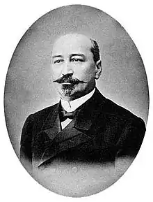 Konovalov was born in Ivanovka and went to study at the Mining institute at St. Petersburg in 1878. He became a student of Dmitri Mendeleev in 1890 and later succeeded him as professor of inorganic chemistry at St. Petersburg. He became director of the Mining institute in 1904 and became a deputy minister of trade and industry, while also presiding of the bureau of weights and measures.[1] Konovalov identified a rule for two liquids in solution and their distillation. He considered two components in a closed system and examined the vapour pressures of the components and stated that at equilibrium, the vapor pressures, and the partial pressures of the components in the vapor, are equal. Konovalov came up with the theory based on a thought experiment and then demonstrated it through experiments. Konovalov's second rule was that the maxima or minima of saturation vapour-pressure curves corresponded to the composition of azeotropic mixtures.[2] Konovalov also examined osmotic pressure across membranes and gave a formula for equilibrium in 1890. He also worked on two component electrolytes and the heat of combustion of organic compounds.