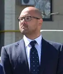 Dmytro Volodymyrovych Svyatash (Ukrainian: Дмитро Володимирович Святаш; born 15 June 1971) is a Ukrainian activist and politician, member of Party of Regions. From May 2002 to July 2019, he served as a member of the Verkhovna Rada. Due to criminal proceedings[1] in 2019 fled to Russia.[2] During Russo-Ukrainian War he is considering by Russian political circles as a potential "Gauleiter" of Slobozhanshchyna.[3]
