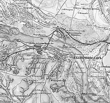 In the mid-1730s, the fortress and Russians returned, living in an uneasy cohabitation with local cossacks.[37] From mid-century they co-existed with the Zaporozhian sloboda (or "free settlement") of Polovytsia located on the site of today's Central Terminal and the Ozyorka farmers market.[40][15]