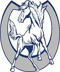 Dobson High School is a public high school located in Mesa, Arizona, United States. It is one of six high schools in Mesa Public Schools and serves grades 9-12. Rhodes and Summit Academy feed students into Dobson. The school's mascot is a Mustang and the school colors are royal blue and silver.