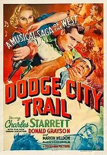 Dodge City Trail is a 1936 American western film directed by Charles C. Coleman. It stars Charles Starrett, Donald Grayson, and Marion Weldon.[1]