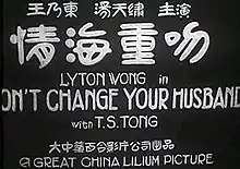 Don't Change Your Husband, also known as Kisses Once, is a 1929 Chinese drama film directed by Y.C. Zai (Xie Yunqing or Xie Yonglan) who also acted in the film. It is likely adapted from the Hollywood movie of the same name.[1][2] Like most Chinese films from this period, it is a black-and-white silent film with both Chinese and English intertitles. An English re-translation of the original Chinese intertitles is available on YouTube.[3]