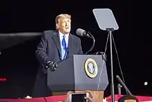 While previous presidents had held rallies in the early days of their presidency to garner support for legislation, such rallies differed from Trump's in that they were funded by the White House rather than by campaign committees.[41][42] One of the advantages of having his campaign committee fund the events is that organizers can more discriminately screen attendees, refusing entry to non-supporters.[43] Trump's February 2017 rally in Melbourne, Florida, was the earliest campaign rally for an incumbent president.[44][45]