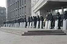 Ukrainian riot police guarding the entrance to the RSA building on 7 March 2014