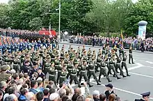 The Donetsk Republic organisation continued to occupy the RSA and upheld all previous calls for a referendum and the release of their leader Pavel Gubarev.[53][lower-alpha 2] On 8 April, about a thousand people rallied in front of the RSA listening to speeches about the Donetsk People's Republic and to Soviet and Russian music.[54] Ukrainian media stated that a number of Russian citizens, including one leader of a far-right militant group, had also taken part in the events.[55]