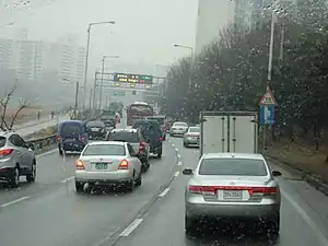 Dongbu Expressway (Korean: 동부간선도로) is an urban expressway located in Gyeonggi and Seoul, South Korea. With a total length of 32.5 km (20.2 mi), this expressway starts from the Bokjeong Interchange in Songpa District, Seoul to Sangchon Interchange in Uijeongbu City, Gyeonggi.