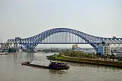 The Dongpingshuidao Bridge is an arch bridge located in Foshan, Guangdong, China. Opened in 2009, it spans 360 metres (1,180 ft) over the Dongping waterway, an arm of the Pearl River. The bridge carries the Wuhan–Guangzhou High-Speed Railway.